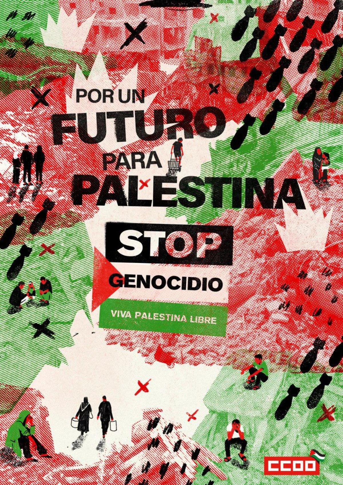Las personas trabajadoras se movilizarán este miércoles, 15 de octubre, en una movilización convocada por CCOO y UGT en apoyo al pueblo palestino y para condenar la política de genocidio y ocupación ilegal que está llevando a cabo el gobierno de Israel, en una jornada de lucha en los centros de trabajo de todo el país que tendrá la cobertura legal de dos horas de paro parcial por turno.